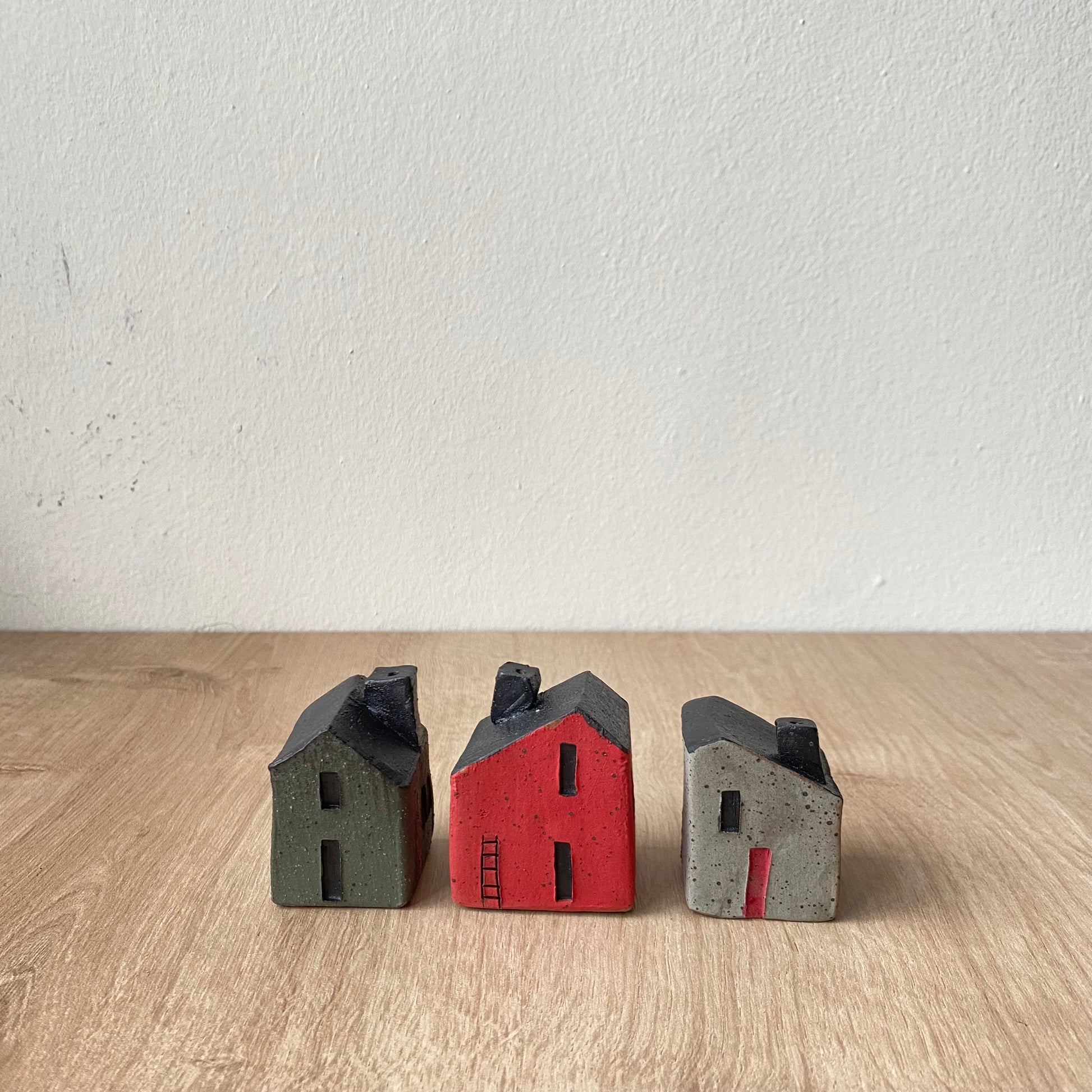 Mini Casitas (Set de 3). Roja, Verde y Gris