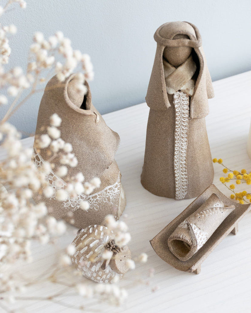 Incluye piezas: José, Maria, Jesús y una ovejita.