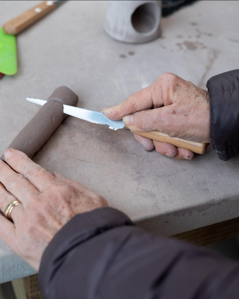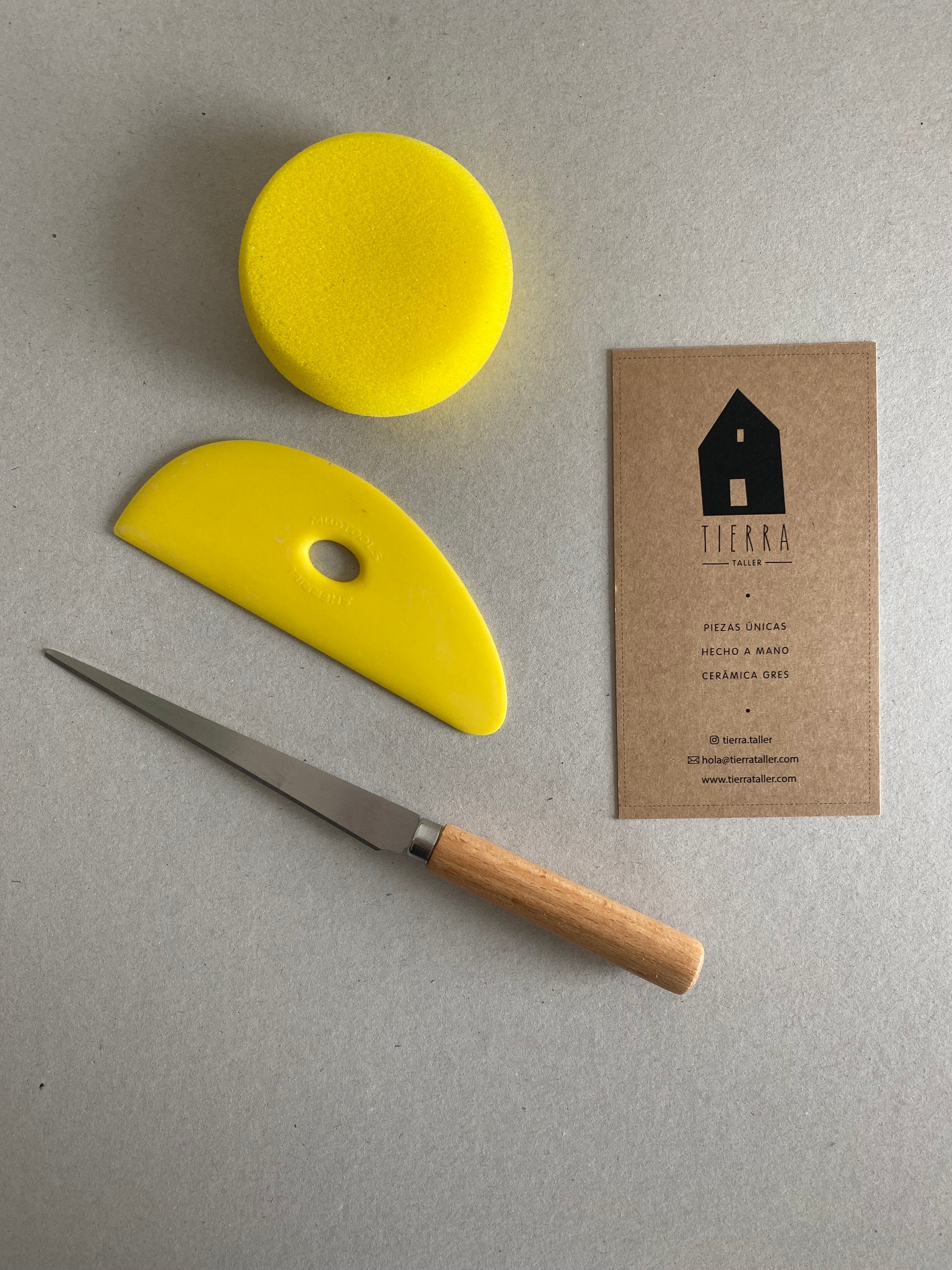 - Cuchillo: Herramienta de corte precisa y ergonómica, perfecta para cortar, tallar y detallar la cerámica gres. Su filo te permitirá realizar incisiones limpias y controladas, asegurando un trabajo preciso en cada paso del proceso.