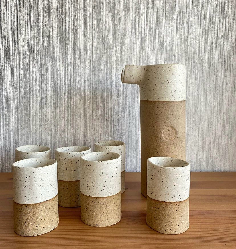 Disfruta de la tradición del pisco sour con un toque único y artesanal gracias a nuestro exclusivo set de cerámica gres. Este conjunto incluye un jarro y seis vasos, cada pieza cuidadosamente hecha a mano.